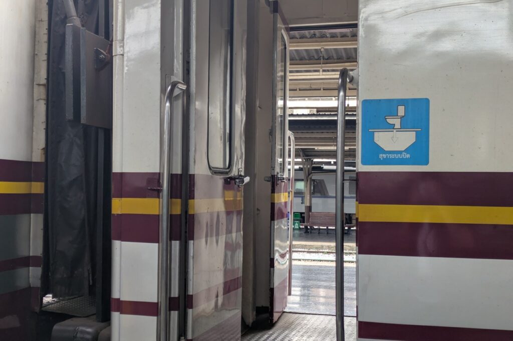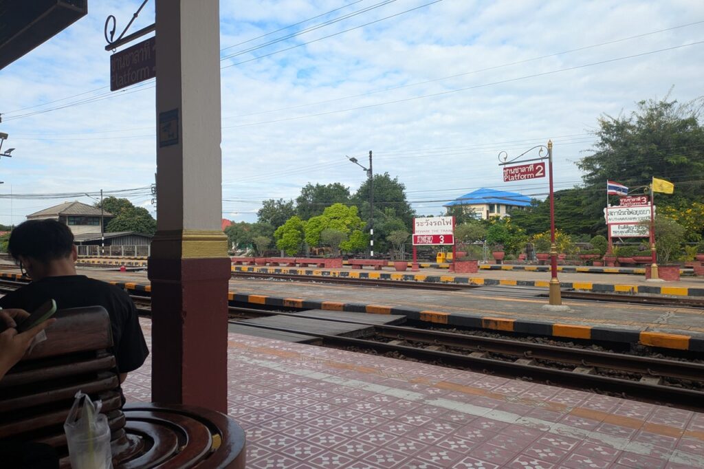 出発から約2時間でアユタヤに到着しました。駅に到着してもアナウンスは特に無いので、外の景色やGoogleマップで現在地を見ながら判断しましょう。
