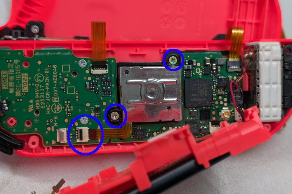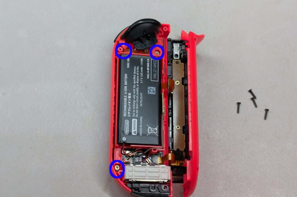 左(L)の場合は、マイナスボタンのフレキシブルケーブルを外してから、スティックを取り外します。