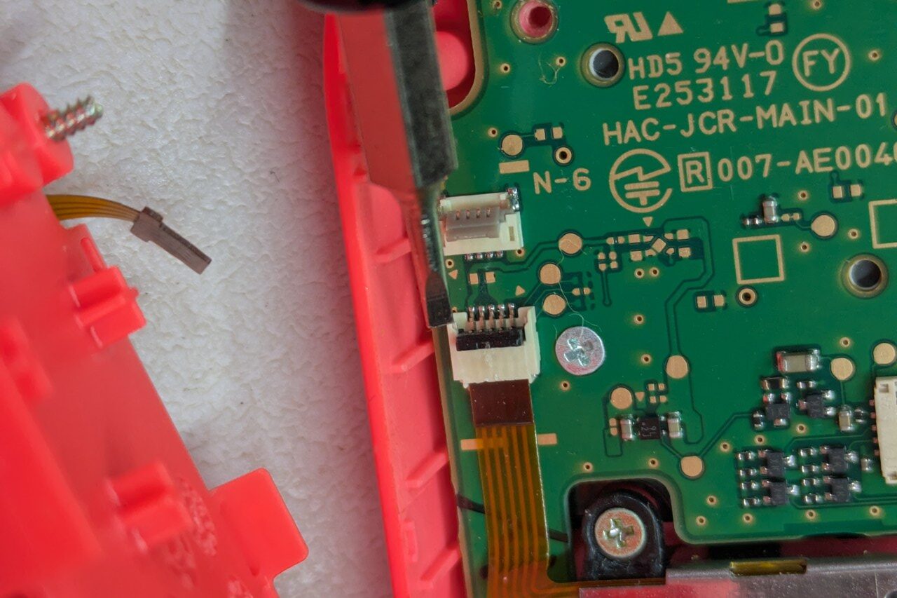 5.スティックのフレキシブルケーブル、+ネジを外し、新しいスティックを同じように付ける