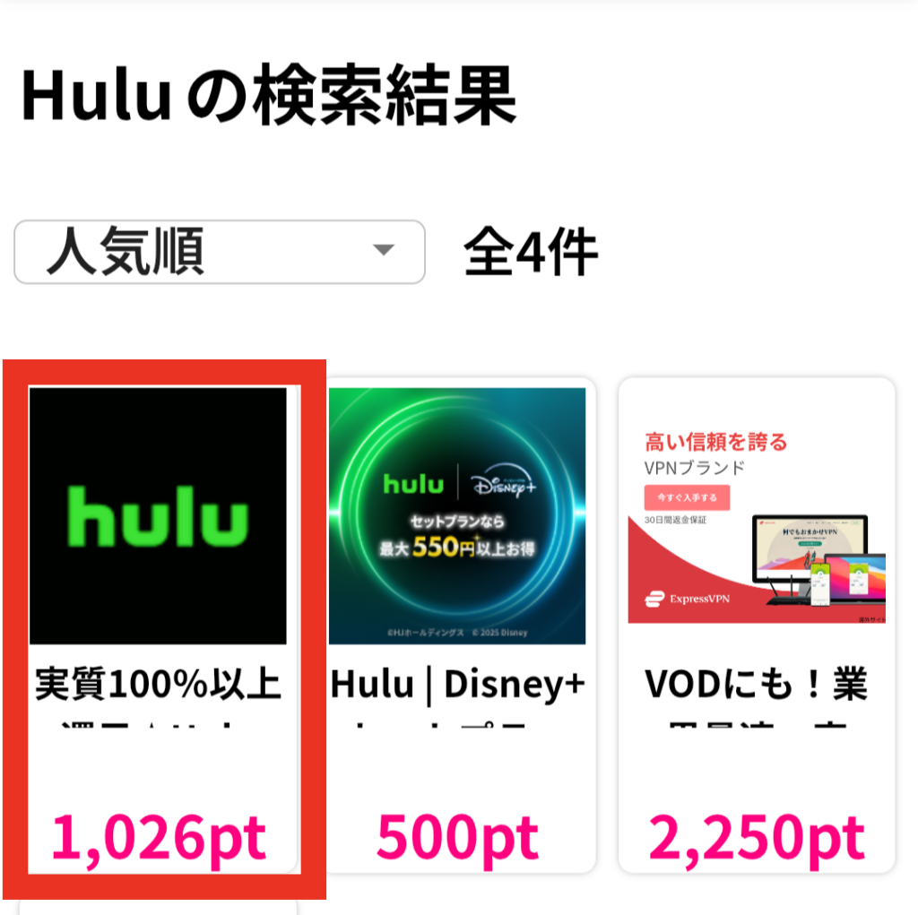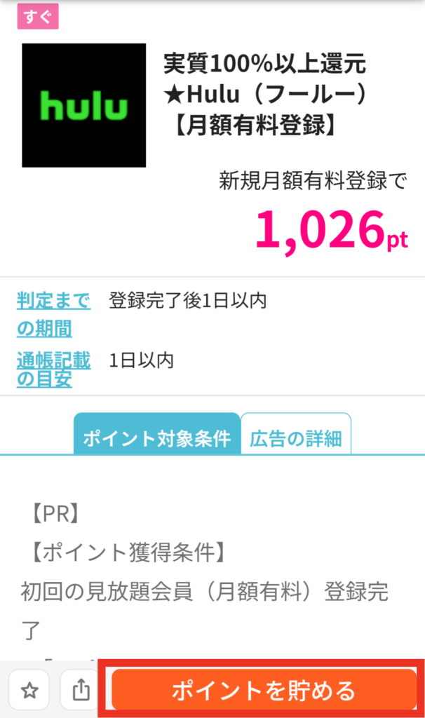 登録の際にHuluに月額料金を支払う必要はありますが、ポイント還元により実質無料になるというカラクリです。