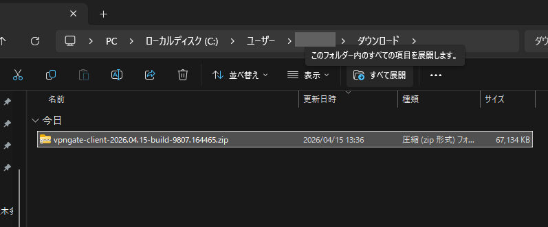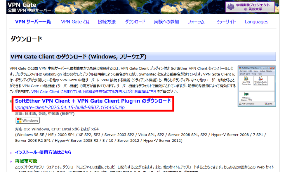 2.”vpngate-client-yyyy.mm.dd-build-xxx.xxx.zip” をクリックし、zipファイルをダウンロード