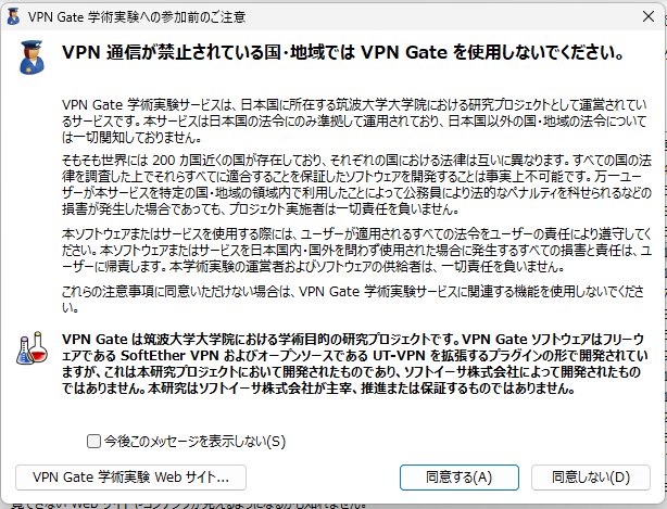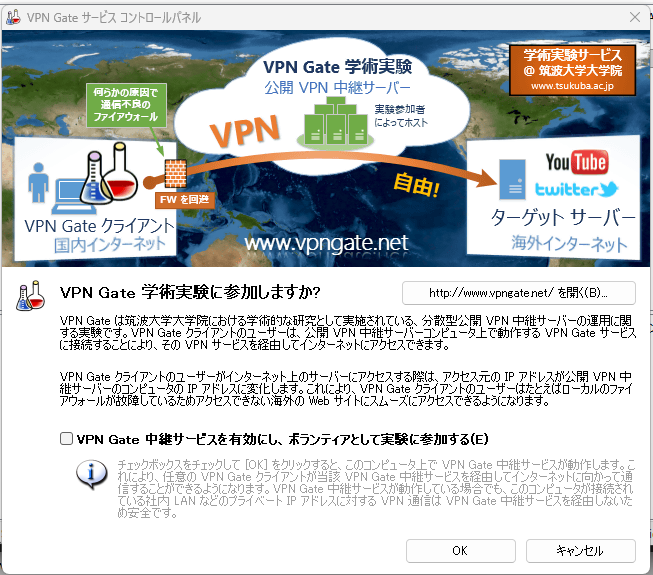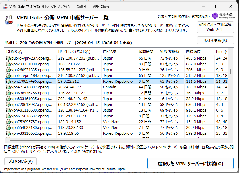 しかし、筑波大学が提供するVPNGateを使用すれば誰でも無料で多くの国のVPNを使用することができます。