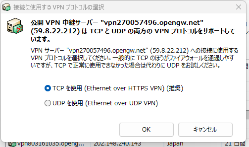 起動したら、”VPN Gate 公開 VPN 中継サーバー”をダブルクリックします