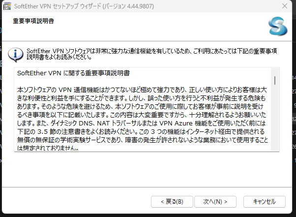 6.SoftEther VPN Clientを選択し”次へ”